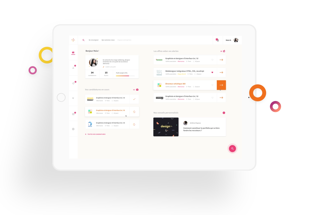 Nous avons accompagné le MEDEF dans la refonte complète de sa plateforme VIP Stage & Alternance. De la conception des landings pages à la refonte du dashboard, notre travail s’est appuyé sur une démarche centrée utilisateurs : ateliers avec les partis prenantes, entretiens, tests et itérations rapides.
